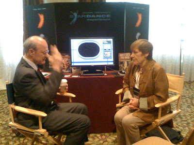 In July of 2007 I attend Robert Heinlein's 100th birthday party, otherwise known as the Heinlein Centennial, in Kansas City. There we met again, after she made a presentation about her plan and hope to create a short film featuring a zero-gravity dance. I asked her if I could help. I was looking for a new project and wanted to explore making a version of Stardance into an IMAX film. We hit it off and started working together on the project.