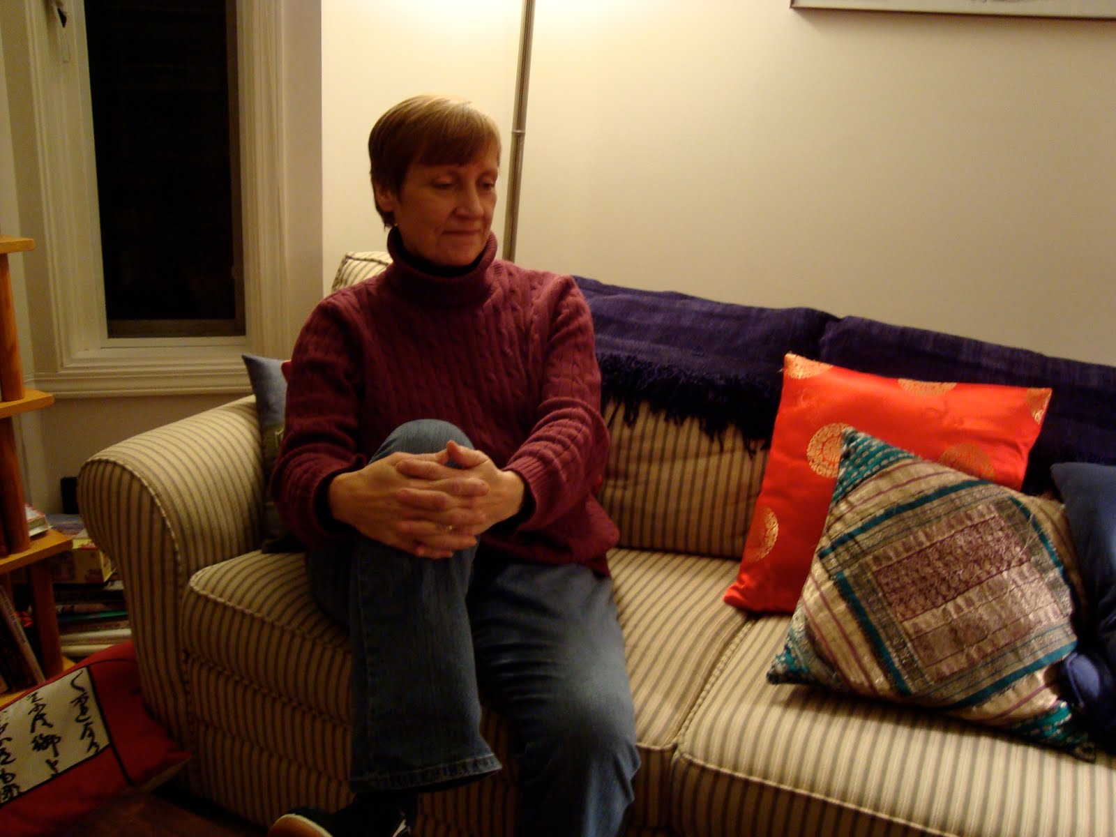 Because her Palliative Care doctor, Paul Sugar, was able to forecast her passing almost to the hour, her daughter Terri, son-in-law Heron and granddaughter Marisa flew back from NYC just in time, and were with me at her side when Jeanne died; and her mother Dorothy and sister Laurie arrived from Massachusetts only a couple of hours later, after Terri had had time to expertly make Jeanne look better than she had for days. Zen priests Michael and Kate Newton were also present per Jeanne’s wishes, as were our oldest friends in this part of the world, Greg McKinnon, Anya Coveney-Hughes and Stevie McDowell. Over the next few hours more sangha buddies arrived, and chanting of the Prajna Paramita Heart Sutra was done. Her body was then bathed and dressed in her hand-sewn rakasu as per Zen tradition.